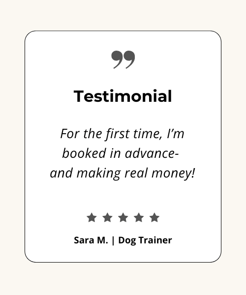 "I finally feel in control of my business. For the first time, I'm booked ahead and I'm not just busy- I'm making real money!"